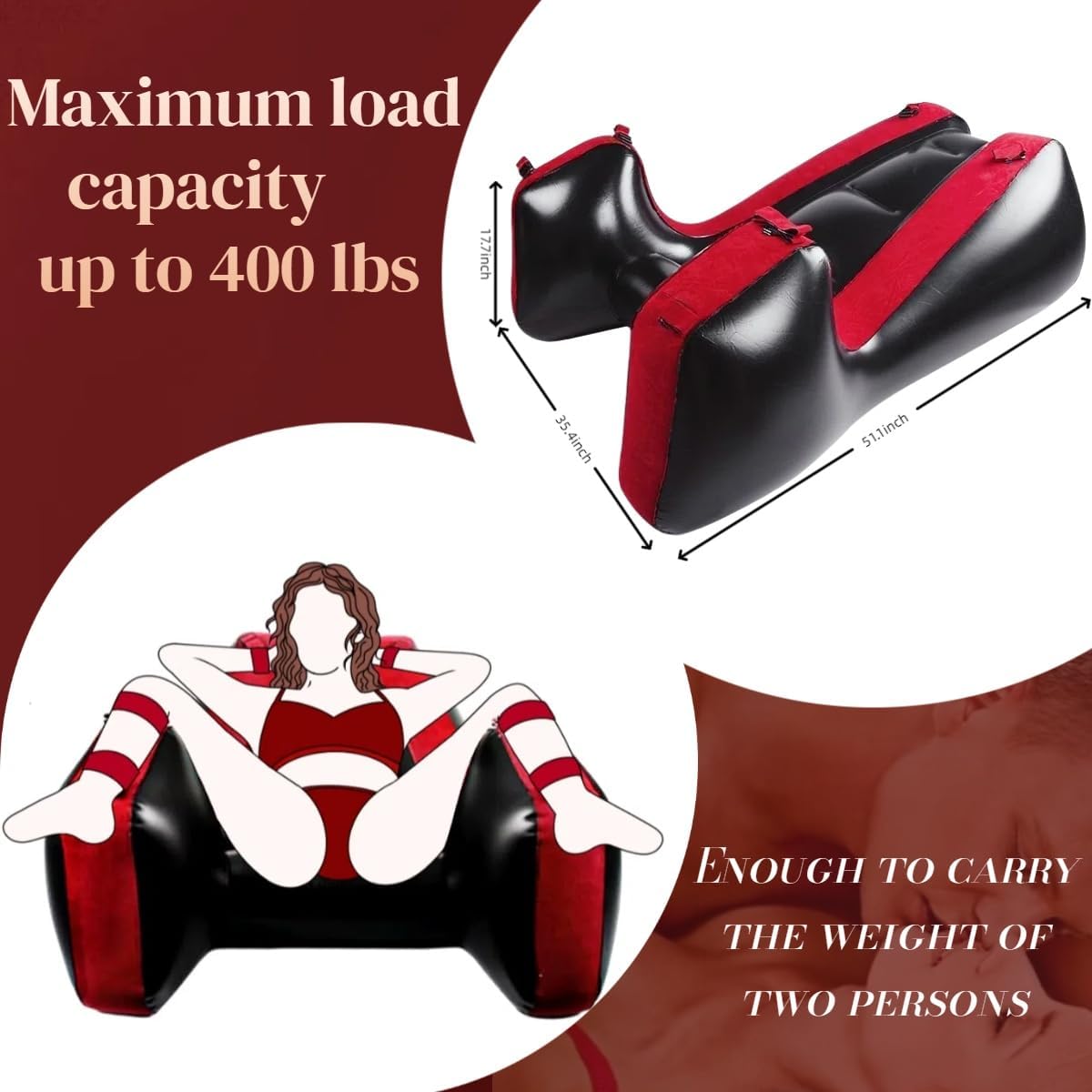 This premium inflatable sofa is engineered with the human body in mind. Unlike traditional beds or standard chairs, which can limit your range of motion or cause strain during prolonged sessions, this sofa contours to your shape. The ergonomic S-curve design supports your back and legs, allowing you to maintain challenging positions with ease.